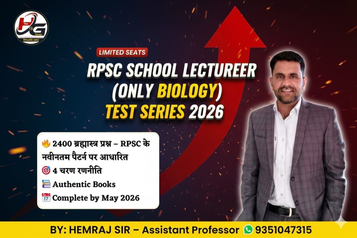 RPSC School Lecturer (Biology) Special Test Series 2026 ЁЯПЖ RPSC 1st Grade Biology: RPSC рдХреА рдЪреЗрддрд╛рд╡рдиреА: "40% рдЕрдВрдХ рд▓рд╛рдирд╛ рднреА рдирд╣реАрдВ рд╣реЛрдЧрд╛ рдЖрд╕рд╛рди" RPSC рдХреЗ рдмрджрд▓рддреЗ рдкреИрдЯрд░реНрди рдФрд░ рд╣рд╛рд▓рд┐рдпрд╛ рдкрд░реАрдХреНрд╖рд╛рдУрдВ рдХреЗ рдХрдард┐рди рд╕реНрддрд░ рдиреЗ рдпрд╣ рд╕реНрдкрд╖реНрдЯ рдХрд░ рджрд┐рдпрд╛ рд╣реИ рдХрд┐ рдЕрдм рдХреЗрд╡рд▓ рд░рдЯрдиреЗ рд╕реЗ рдЪрдпрди рдирд╣реАрдВ рд╣реЛрдЧрд╛ред рдЬрдм рдкреЗрдкрд░ рдХрд╛ рд╕реНрддрд░ рдЙрдЪреНрдЪрддрдо рд╣реЛрдЧрд╛, рддреЛ рдЖрдкрдХреА рддреИрдпрд╛рд░реА рдХрд╛ рд╕реНрддрд░ рднреА 'рдЕрд╕рд╛рдзрд╛рд░рдг' рд╣реЛрдирд╛ рдЪрд╛рд╣рд┐рдПред рдЗрд╕реА рдЪреБрдиреМрддреА рдХреЛ рд╕реНрд╡реАрдХрд╛рд░ рдХрд░рддреЗ рд╣реБрдП, THEHGCONCEPT рд▓реЗрдХрд░ рдЖрдпрд╛ рд╣реИтАФRPSC School Lecturer (Biology) Special Test Series 2026ред ЁЯМЯ рдорд╛рд░реНрдЧрджрд░реНрд╢рди: рд╣реЗрдорд░рд╛рдЬ рд╕рд░ (рд╕рд╣рд╛рдпрдХ рдЖрдЪрд╛рд░реНрдп - Assistant Professor) рдпрд╣ рдЯреЗрд╕реНрдЯ рд╕реАрд░реАрдЬ рдХреЗрд╡рд▓ рдкреНрд░рд╢реНрдиреЛрдВ рдХрд╛ рд╕рдВрдЧреНрд░рд╣ рдирд╣реАрдВ рд╣реИ, рдмрд▓реНрдХрд┐ рд╕рд╣рд╛рдпрдХ рдЖрдЪрд╛рд░реНрдп рд╣реЗрдорд░рд╛рдЬ рд╕рд░ рдХреЗ рд╡рд░реНрд╖реЛрдВ рдХреЗ рдЕрдиреБрднрд╡ рдФрд░ рдЧрд╣рди рд╡рд┐рд╢реНрд▓реЗрд╖рдг рдХрд╛ рдирд┐рдЪреЛрдбрд╝ рд╣реИред рдкрд┐рдЫрд▓реА рд╕реНрдХреВрд▓ рд▓реЗрдХреНрдЪрд░рд░ рдФрд░ рдЕрд╕рд┐рд╕реНрдЯреЗрдВрдЯ рдкреНрд░реЛрдлреЗрд╕рд░ рднрд░реНрддреА рдореЗрдВ рдмреЗрд╣рддрд░реАрди рд░рд┐рдЬрд▓реНрдЯреНрд╕ рдХреЗ рд╕рд╛рде рд╣рдордиреЗ рд╕рд╛рдмрд┐рдд рдХрд┐рдпрд╛ рд╣реИ рдХрд┐ рдЧреБрдгрд╡рддреНрддрд╛ рд╣реА рд╣рдорд╛рд░реА рдкрд╣рдЪрд╛рди рд╣реИред ЁЯФе рд╣рдорд╛рд░реА рдЯреЗрд╕реНрдЯ рд╕реАрд░реАрдЬ рдХреА рдЕрдиреВрдареА рд╡рд┐рд╢реЗрд╖рддрд╛рдПрдВ: тЬЕ 2400 'рдмреНрд░рд╣реНрдорд╛рд╕реНрддреНрд░' рдкреНрд░рд╢реНрди: рдкреВрд░реЗ рдкрд╛рдареНрдпрдХреНрд░рдо рд╕реЗ рдЪреБрдирд┐рдВрджрд╛ 2400 рдкреНрд░рд╢реНрдиреЛрдВ рдХрд╛ рд╕рдВрдХрд▓рдиред рдпрджрд┐ рдЖрдкрдиреЗ рдЗрди 2400 рдкреНрд░рд╢реНрдиреЛрдВ рдХреЗ рдкреАрдЫреЗ рдХреЗ рдХреЙрдиреНрд╕реЗрдкреНрдЯреНрд╕ рдХреЛ рд╕рдордЭ рд▓рд┐рдпрд╛, рддреЛ рдкреЗрдкрд░ II (Biology) рдореЗрдВ рдЖрдкрдХреА рд╕рдлрд▓рддрд╛ рд╕реБрдирд┐рд╢реНрдЪрд┐рдд рд╣реИред тЬЕ рдЙрдЪреНрдЪрддрдо рдХрдард┐рдирд╛рдИ рд╕реНрддрд░ (Elite Level Difficulty): рд╣рдо рдкреНрд░рд╢реНрдиреЛрдВ рдХреЛ RPSC рдХреЗ рд╡рд░реНрддрдорд╛рди 'рдмрджрд▓рддреЗ рдкреИрдЯрд░реНрди' рдФрд░ 'рдЧрд╣рди рдХреЙрдиреНрд╕реЗрдкреНрдЯреНрд╕' рдХреЗ рдЖрдзрд╛рд░ рдкрд░ рддреИрдпрд╛рд░ рдХрд░рддреЗ рд╣реИрдВ, рддрд╛рдХрд┐ рдореБрдЦреНрдп рдкрд░реАрдХреНрд╖рд╛ рдореЗрдВ рдЖрдкрдХреЛ рдХреБрдЫ рднреА рдирдпрд╛ рди рд▓рдЧреЗред тЬЕ рд╕рд┐рд╕реНрдЯрдореИрдЯрд┐рдХ рдФрд░ рд╕рд┐рд▓реЗрдХреНрдЯрд┐рд╡: THEHGCONCEPT рдХрд╛ рдореВрд▓ рдордВрддреНрд░ рд╣реИтАФSelective, Systematic and Simplest. рд╣рдо рдЖрдкрдХреЛ рд╡рд╣реА рдкрдврд╝рд╛рддреЗ рд╣реИрдВ рдЬреЛ рдПрдЧреНрдЬрд╛рдо рдХреЗ рд▓рд┐рдП рдЬрд░реВрд░реА рд╣реИред тЬЕ рдЧрд╣рди рд╡рд┐рд╢реНрд▓реЗрд╖рдг: рд╣рд░ рдкреНрд░рд╢реНрди рдЬреАрд╡рд╡рд┐рдЬреНрдЮрд╛рди рдХреЗ рд╕рд┐рджреНрдзрд╛рдВрддреЛрдВ рдХреА рдЧрд╣рд░рд╛рдИ рддрдХ рдЬрд╛рдХрд░ рдмрдирд╛рдпрд╛